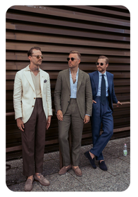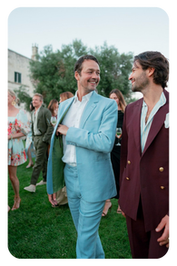 Light fabrics, soft colours, and smart shoes that work on grass will fit the mood perfectly.